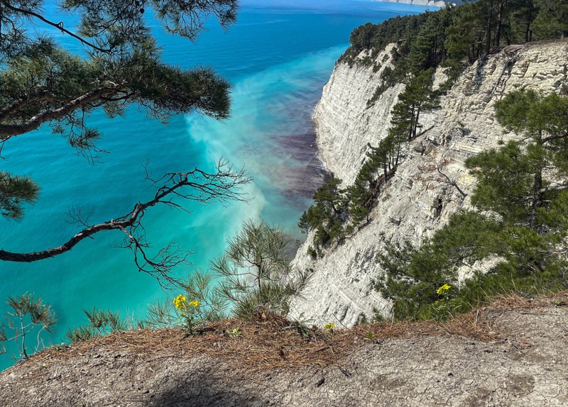 Начнём с одного из самых живописных мест Геленджика. Отсюда открывается потрясающий вид на море и скалы, а путь к бездне пролегает через сосновый бор.
